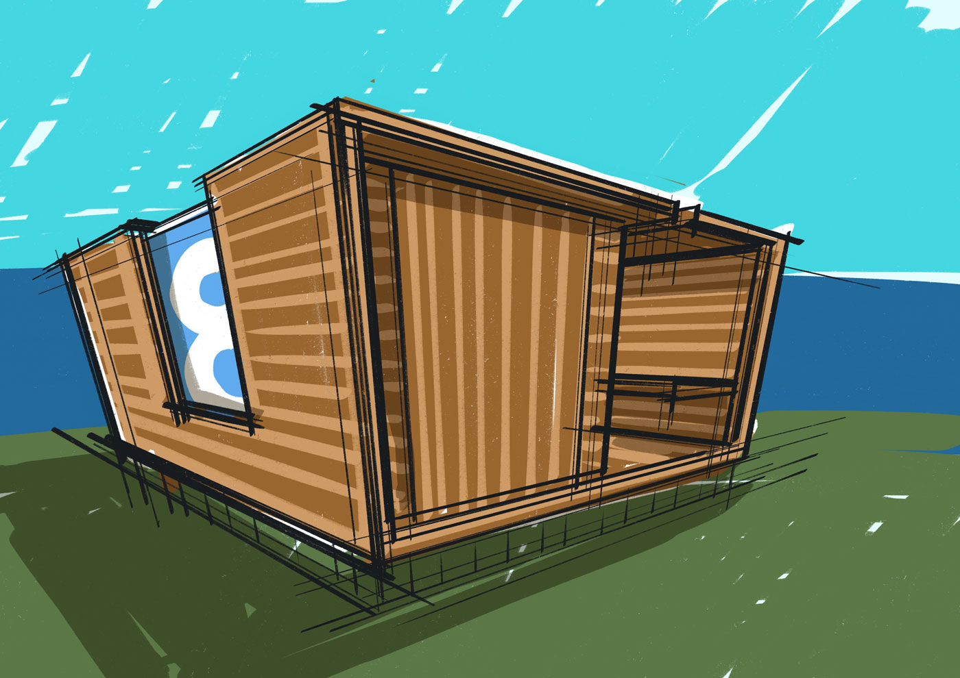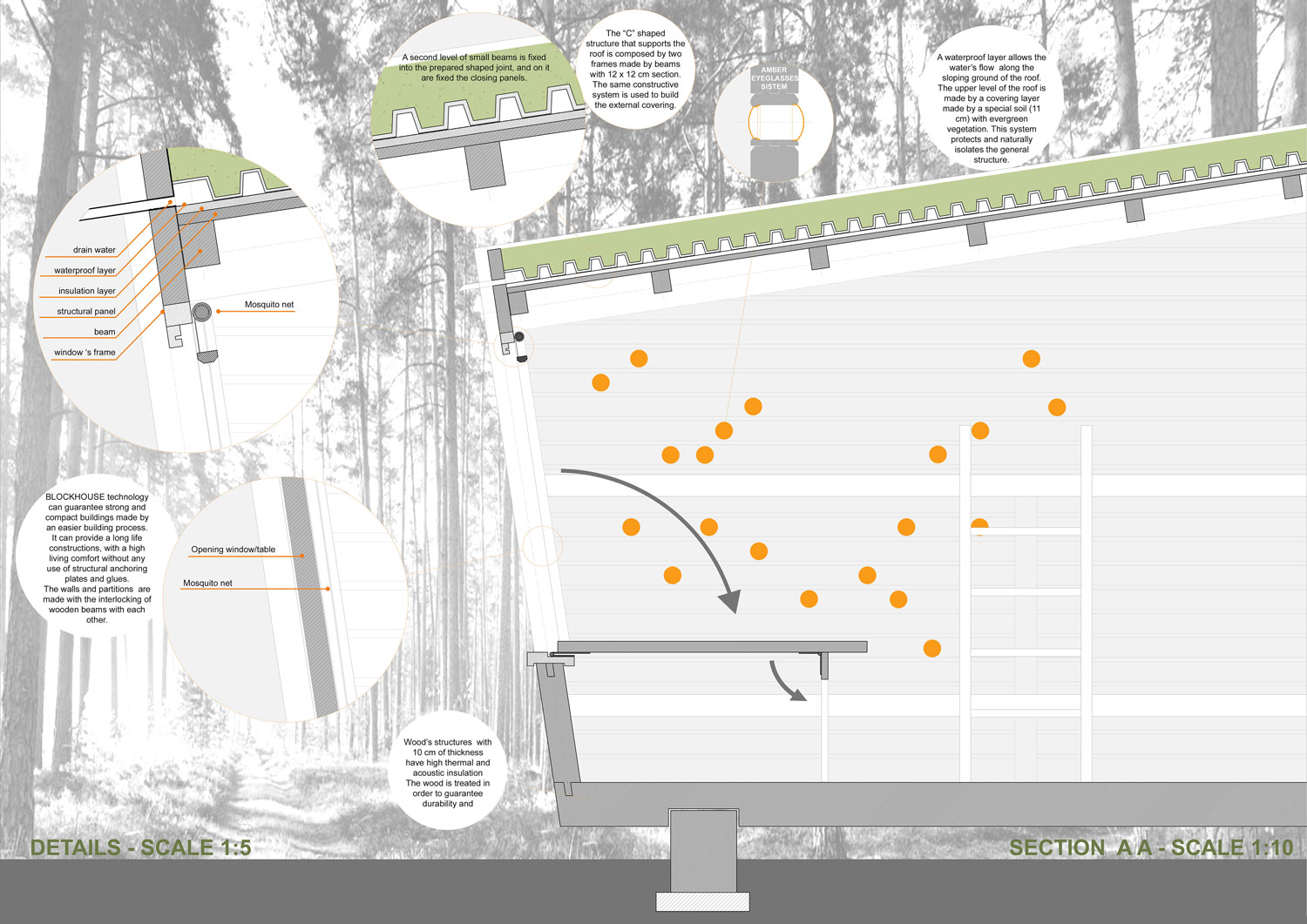 The structure is realized by overlaying solid beech wood beams. It can be pre-assembled and easily placed in the final location.