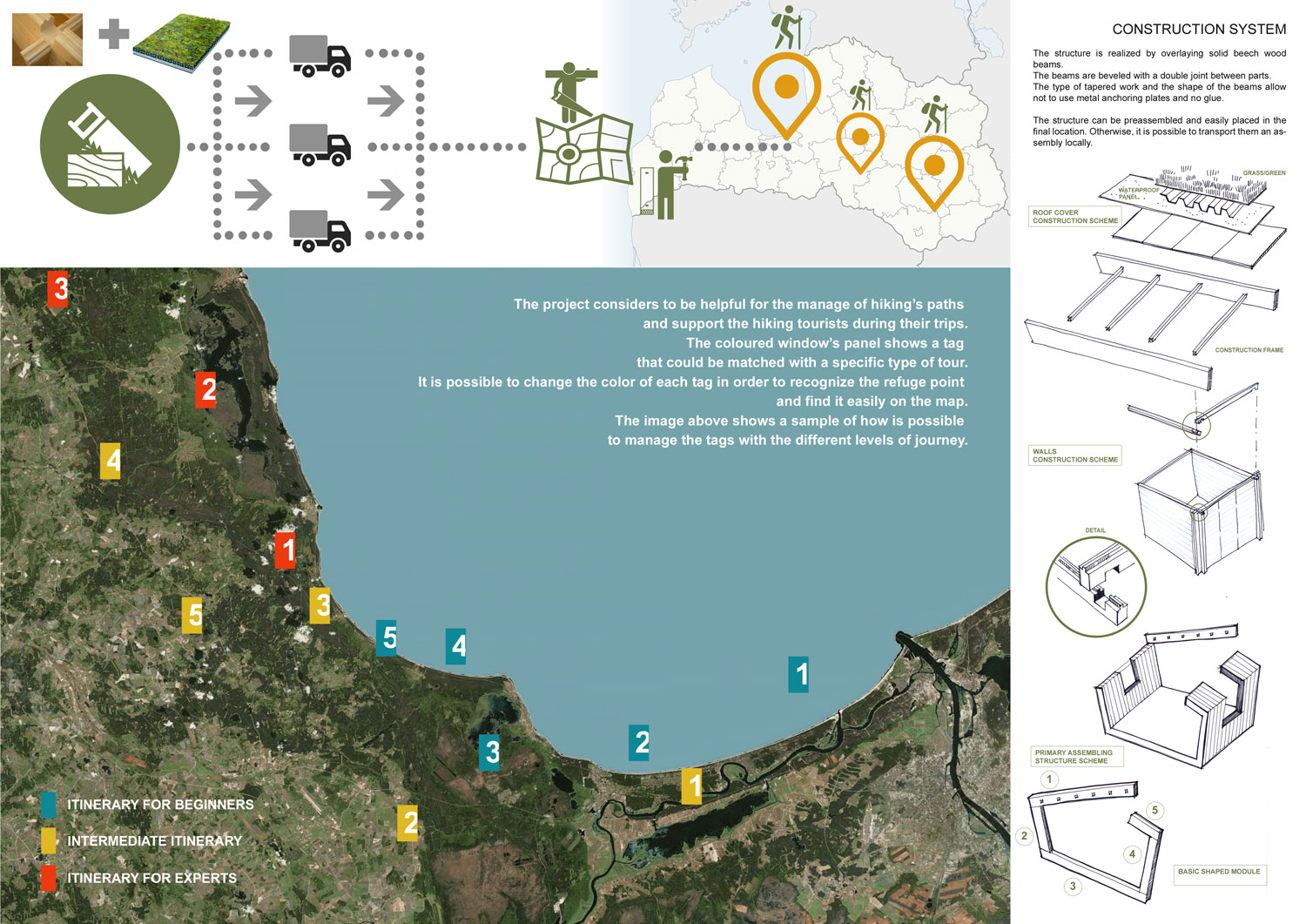 Coloured window's panel shows a tag that could be matched with a specific type of tour. It is possible to change the color of each tag in order to recognize the refuge point and find it easily on a map.