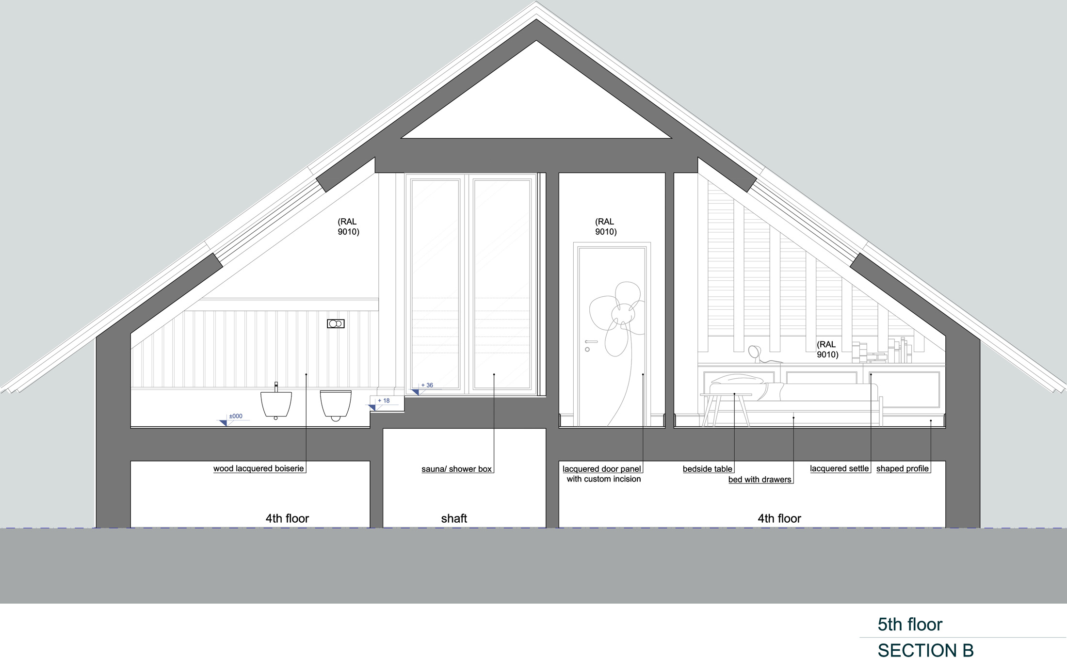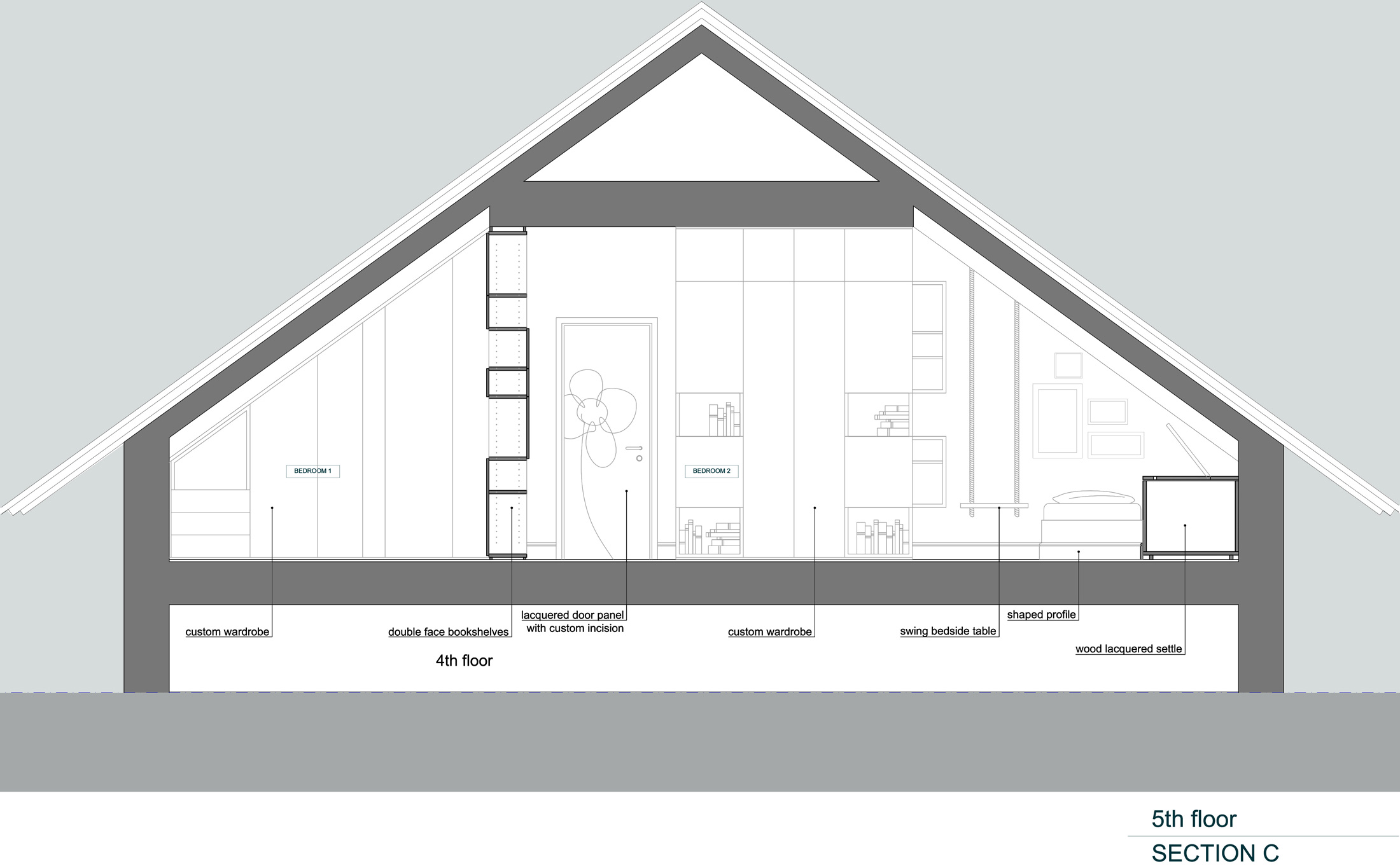 The project has been developed from the on-site survey to the drawings for the construction site and the carpenter furnishing drawings.