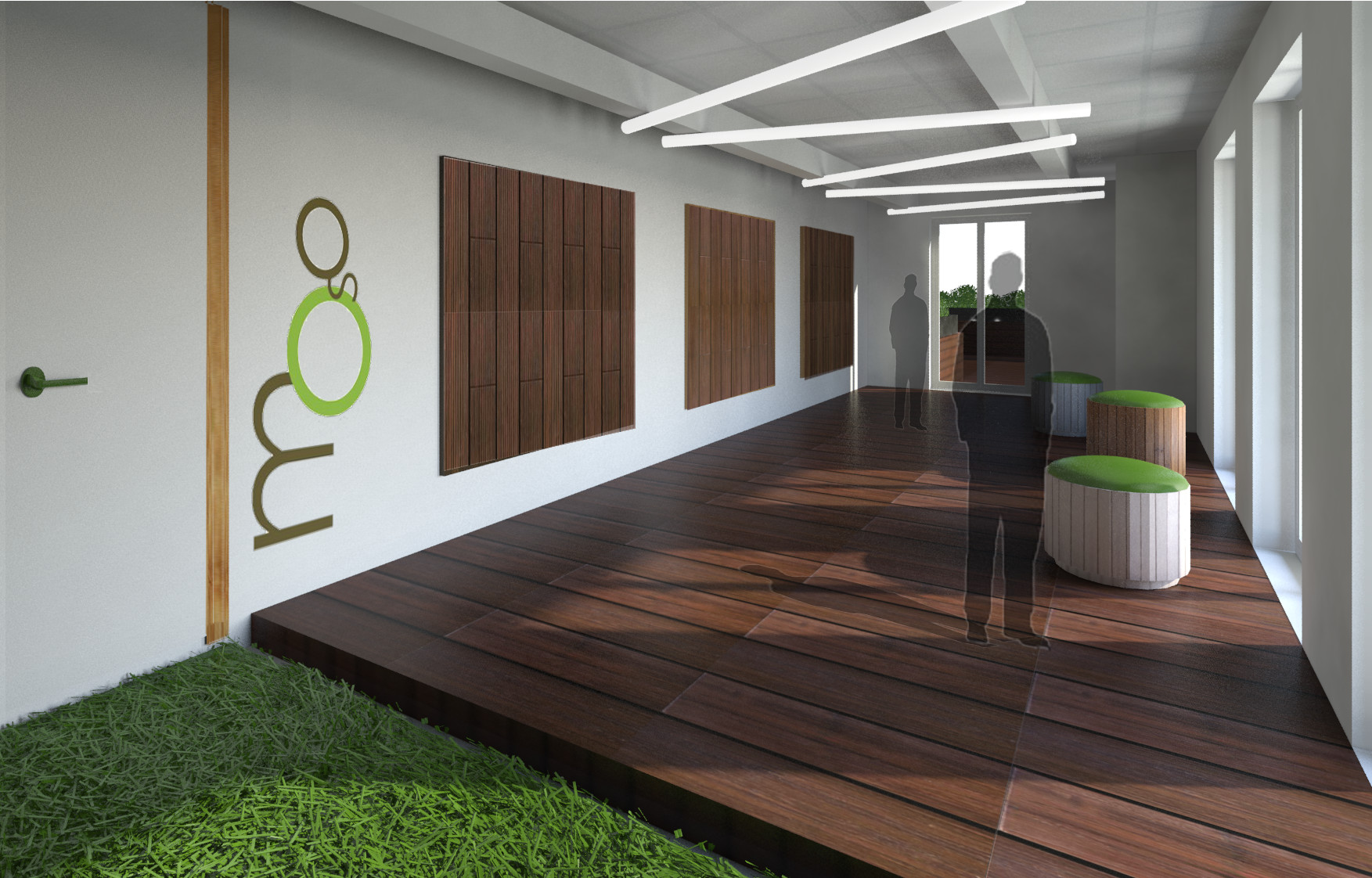 Interior design project for Moso Showroom: Sketches and preliminary render views.