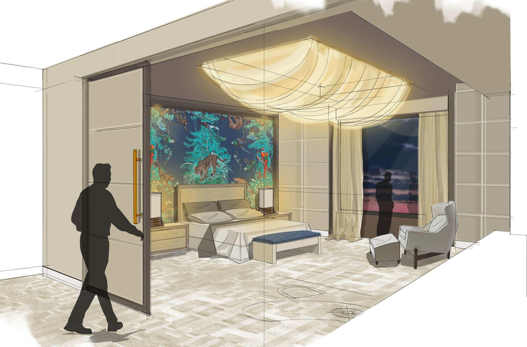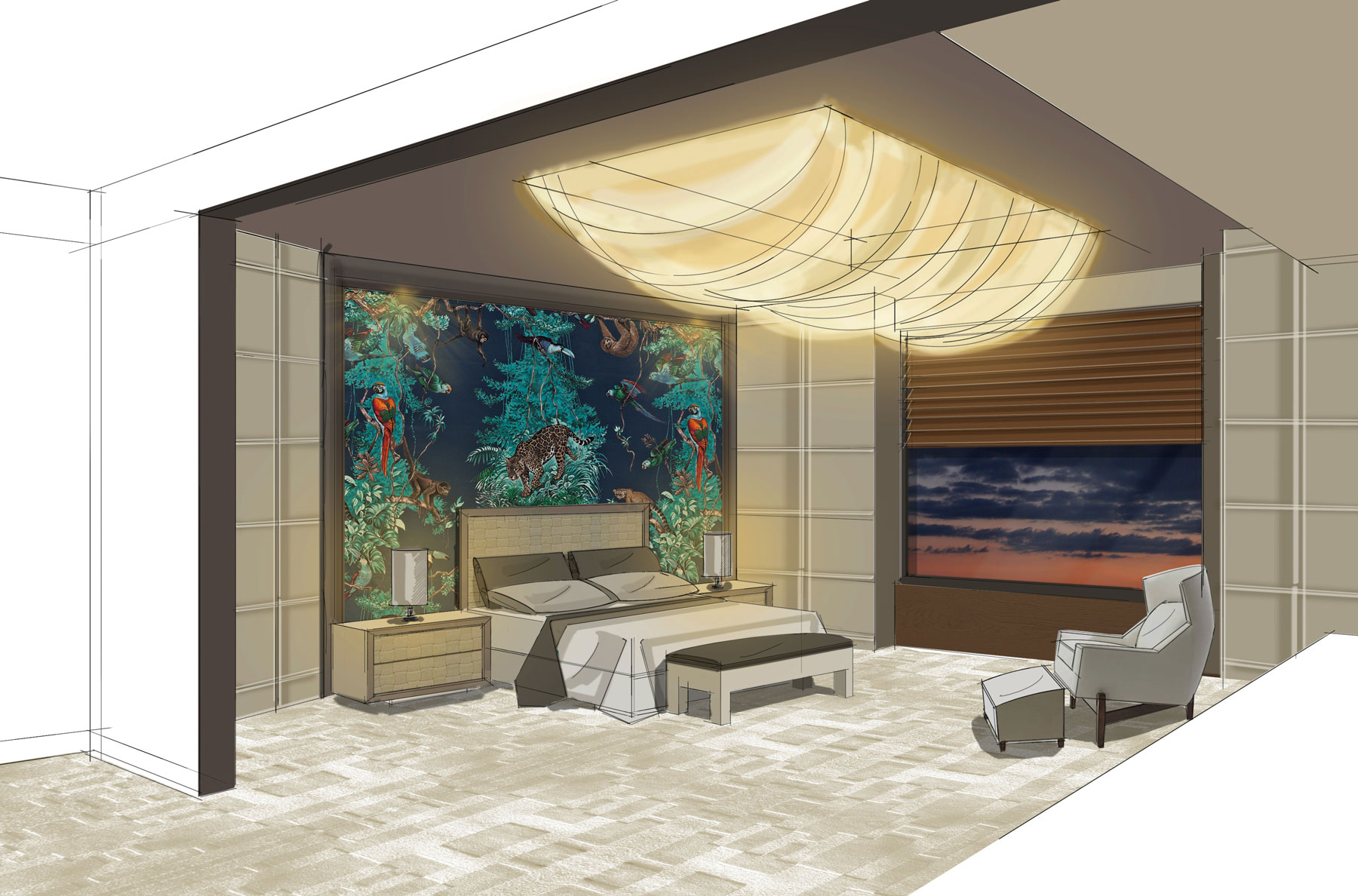 The project involves the interior design for the presidential suite of the Pangu hotel in Beijing.