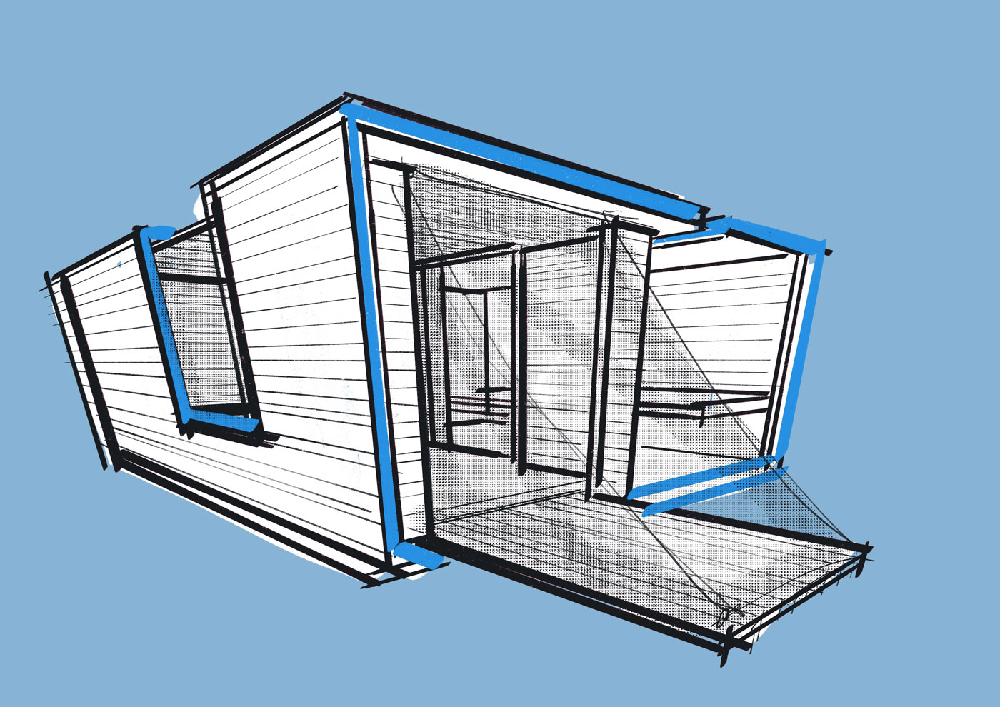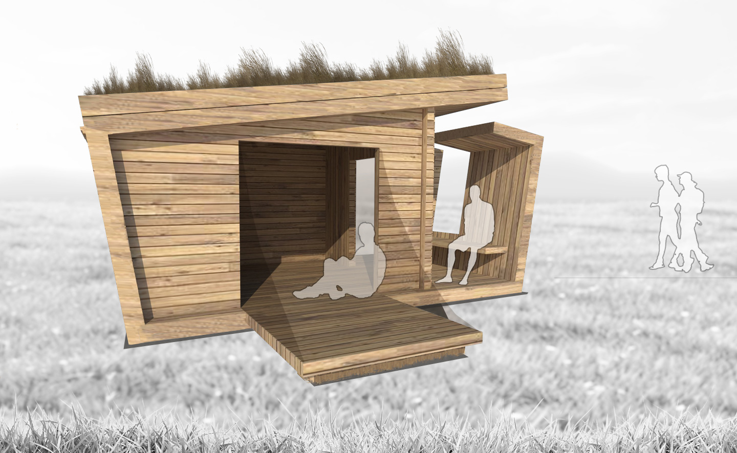 The structure is realized by overlaying solid beech wood beams. It can be pre-assembled and easily placed in the final location.