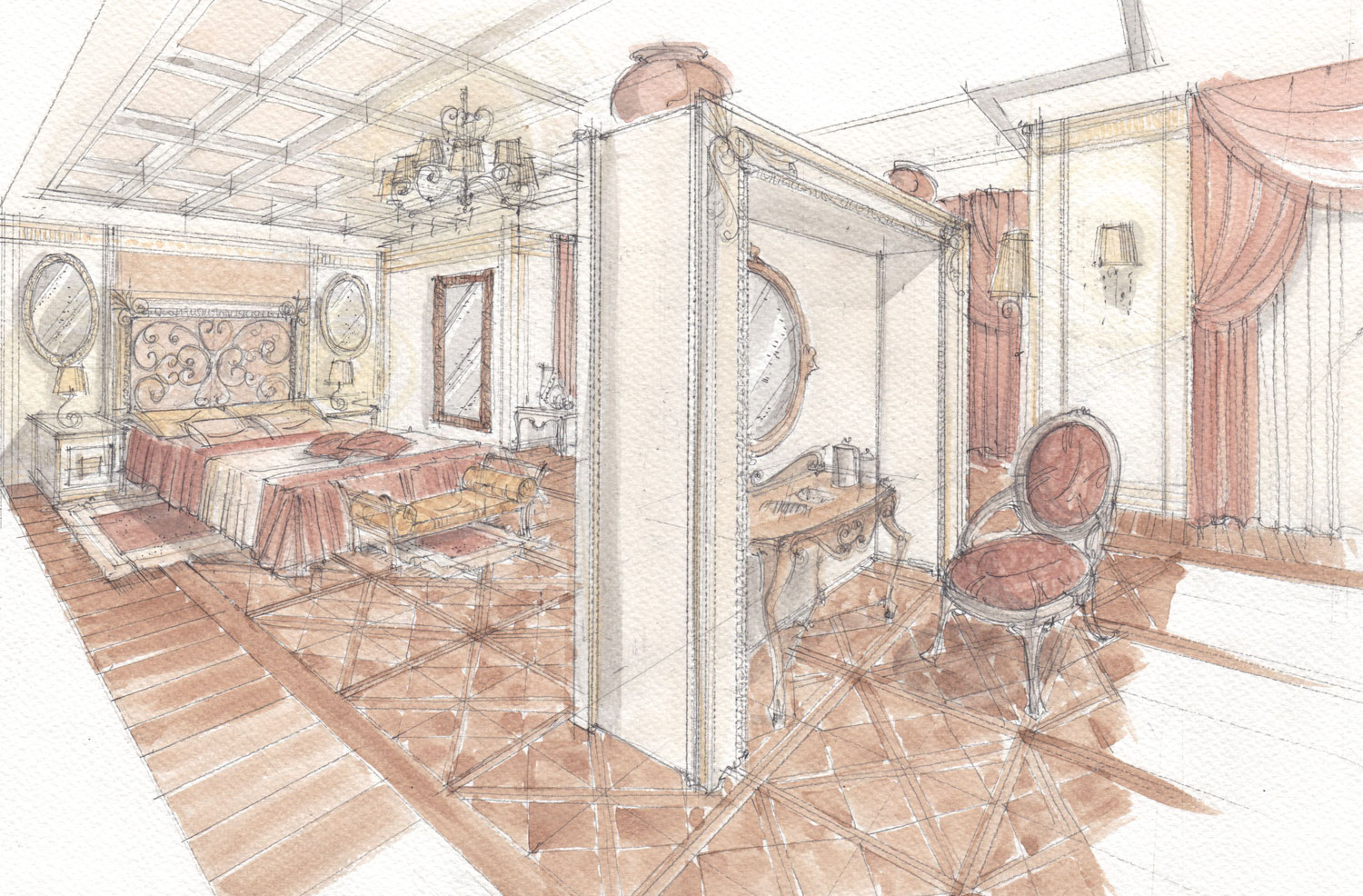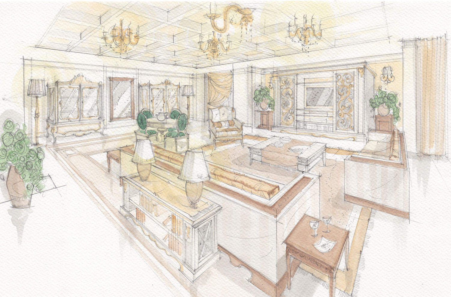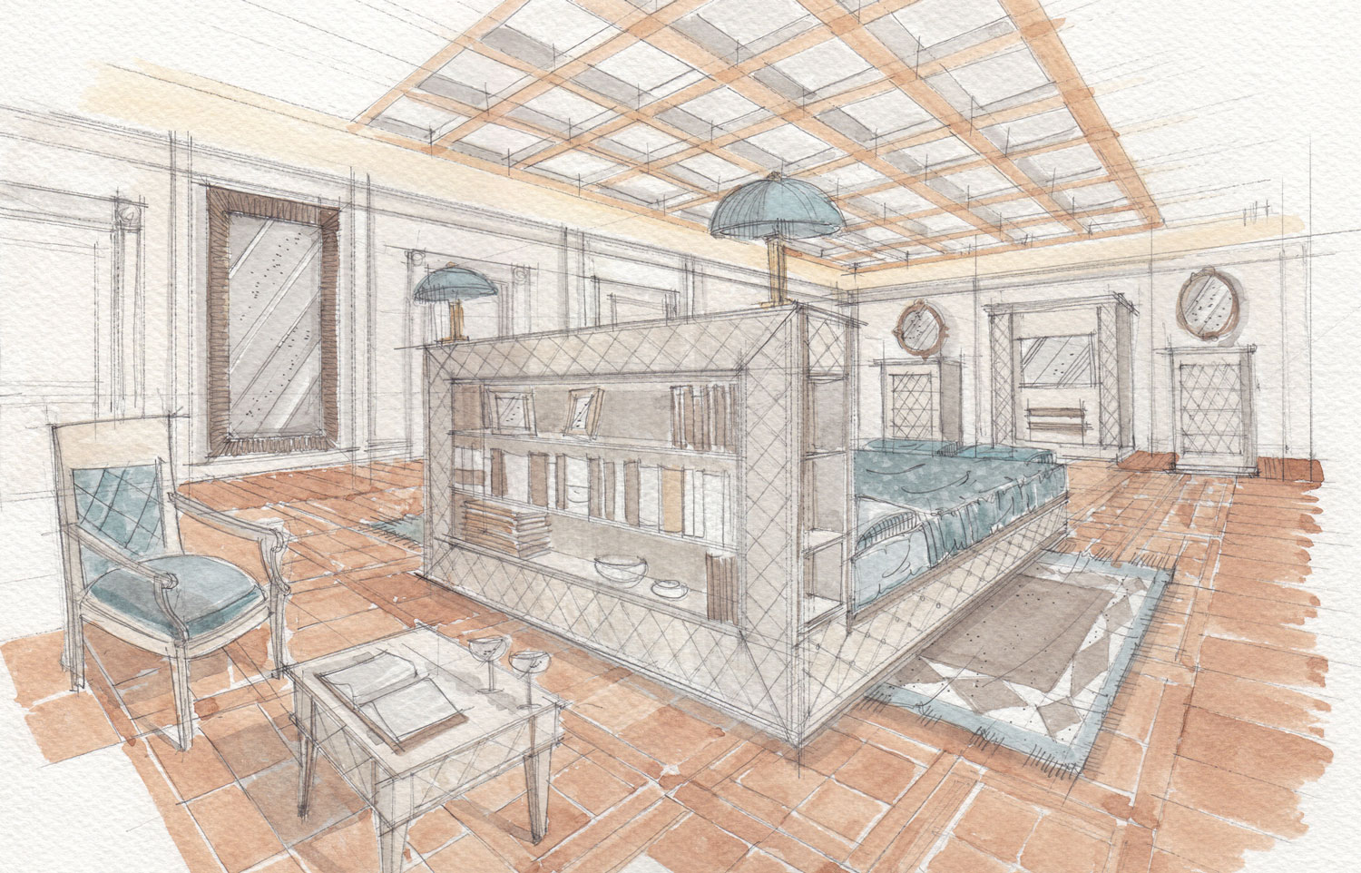 The preparation for watercolor final views has been developed by designing general sketches to support project. Sketches are part of a complete illustrative collection for the customer from which the drawings to be reproduced in the final version have been selected.