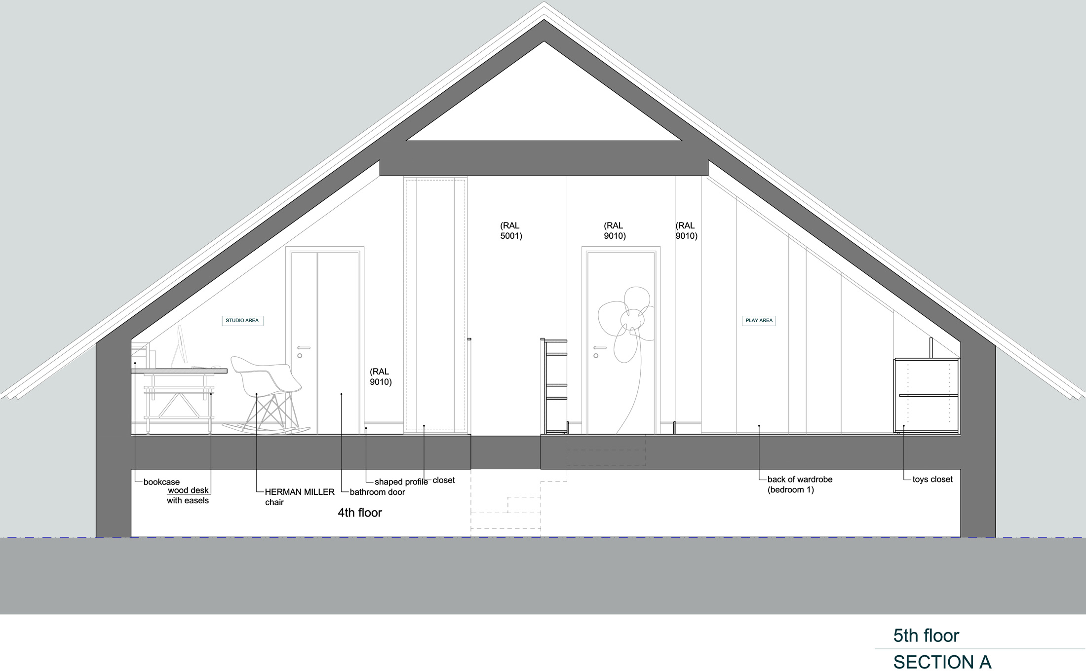 The kids’ area is developed around three requests: a independent room for each child, the opportunity to have a common play room and having a studio corner.