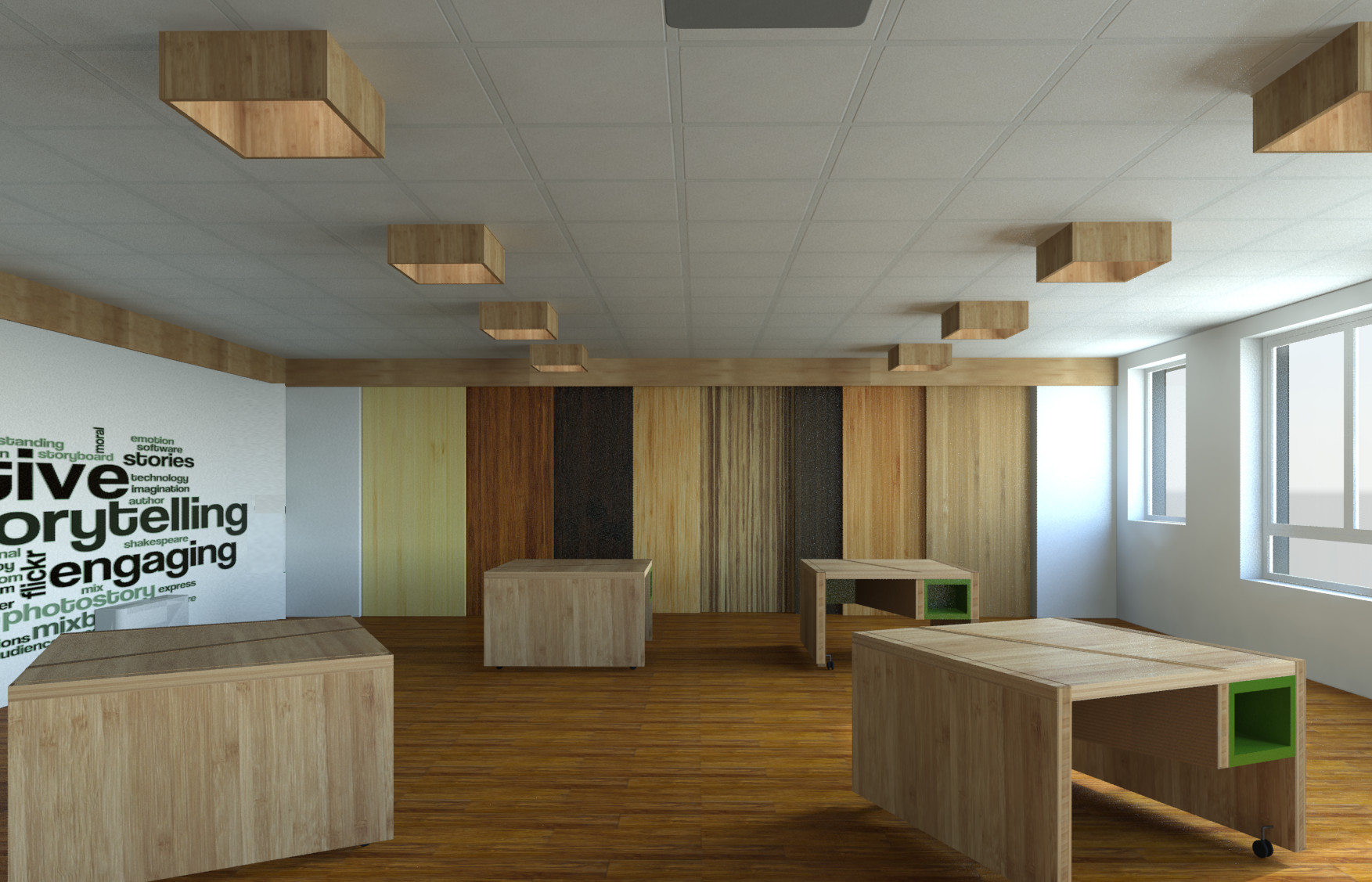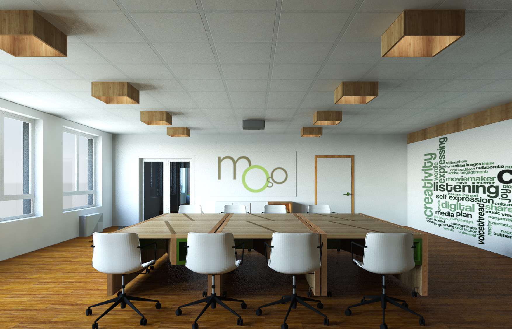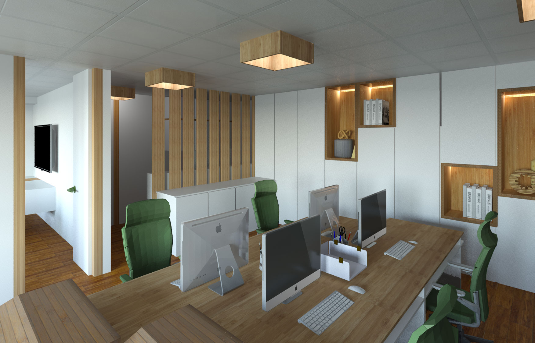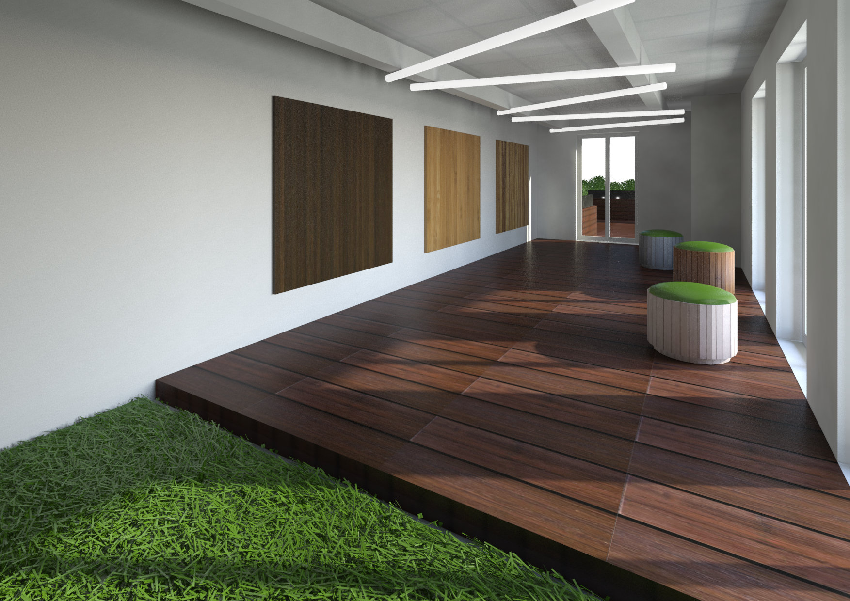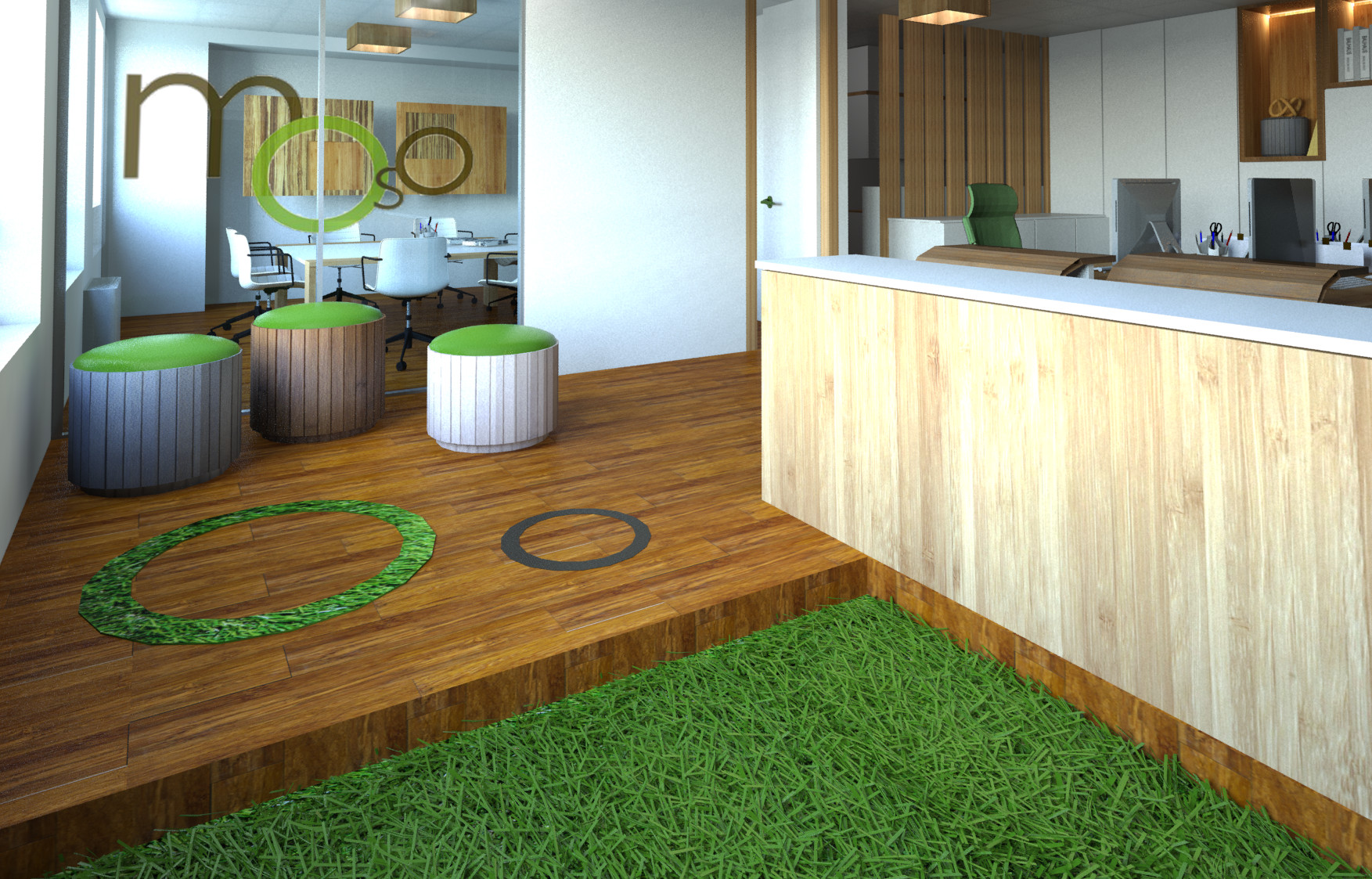 Everything is designed to create a welcoming and relaxing working environment, bild of natual colors and material such as grass and wood.