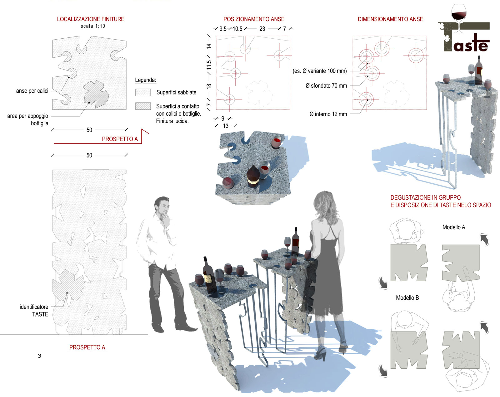 TASTE is the concept for a freestanding table designed for wine tasting and intended for wine bars, cellars and wine and food venues.